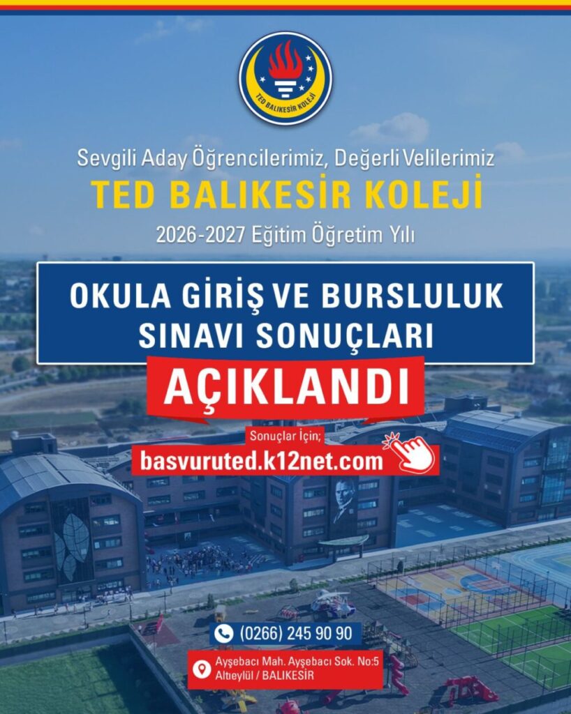 TED Balıkesir Koleji 2026–2027 eğitim öğretim yılı okula giriş ve bursluluk sınavı sonuçları açıklandı! Yoğun ilginize teşekkür ederiz. Sonuçları öğrenmek için: basvuruted.k12net.com
